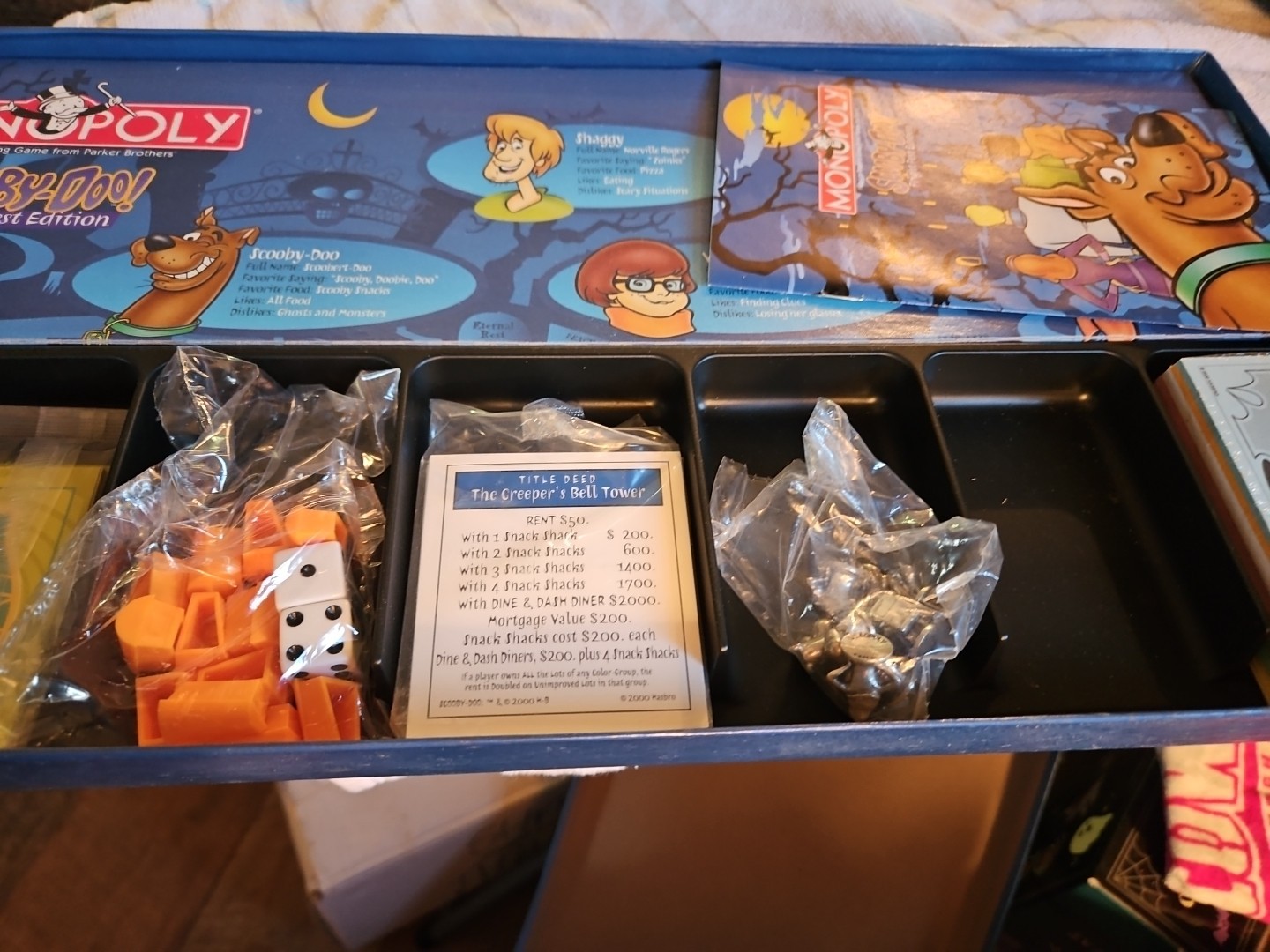 SCOOBY-DOO Fright Fest Monopoly - 2000 Parker Brothers Unused, box is opened, all pieces inside are still in packages See photos