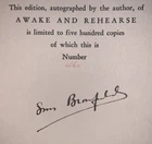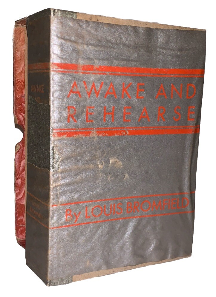 Awake and Rehearse by Louis Bromfield New York: Frederick A. Stokes Company 1929 First Edition Thus This edition, autographed by the author, of Awake and Rehearse is limited to five hundred copies of which this is Number 460 Signed by the author on the limitation notice. Octavo, 349 pages, publisher's original silver boards. Publisher's original decorative slipcase. Some of the edges remain unopened. Some rubbing and wear, discoloration and wear to slipcase. Loss to spine, some water damage but without any odor, else in good condition. Awake and Rehearse by Louis Bromfield is a lesser-known yet thought-provoking work that delves into themes of human resilience, self-discovery, and the interplay between past and present. Bromfield, known for his keen storytelling and deep philosophical reflections, crafts a narrative that blends personal introspection with broader social commentary. The book explores the complexities of life’s choices and the ways in which individuals rehearse their actions, both literally and metaphorically, in pursuit of a fulfilling existence. With his characteristic lyrical prose and rich character development, Bromfield presents a compelling meditation on the nature of ambition, regret, and the perpetual struggle to balance personal desires with societal expectations. While not as widely recognized as some of his other works, Awake and Rehearse remains a testament to Bromfield’s literary prowess and his ability to capture the subtleties of human experience. If you have any questions, feel free to ask, and don't forget to check out my other listings.