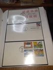 This is an older album that the cover is starting to separate. There are approx..300 covers, maybe a few more or a few less. Counted like 5 times and lost track every time. Covers are in nice shape. There is a 1.00, 5.00, 9.95, 2.00 with 4 stamps, and a 3.00 covers and many multiple stamp covers.