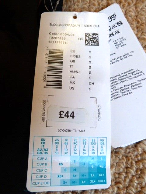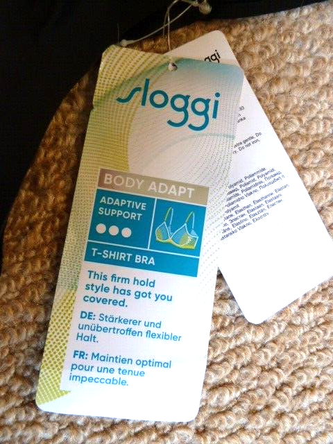SLOGGI BODY ADAPT T-SHIRT BRA ADAPTIVE WIRELESS SUPPORT. BLACK SIZE SMALL (FITS 34A, 34B, 32C) NEW WITH TAGS RRP £44
