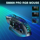 SM809 Pro Wireless MMO Gaming Mouse with 9 Side Buttons,24000 DPI,Triple Connectivity (2.4G/BT5.0/Wired) RGB MMO Mouse for Gamer,16 Programmable Macros,Up to 350H Battery Life,Black Triple Connectivity: SM809 Pro wireless MMO gaming mouse supports tri mode connection(2.4GHz/BT5.0/Type C wired).It can save the settings of up to 4 devices and is compatible with devices such as desktop computers,laptops,smartphones and tablets.You can quickly switch between different connections by pressing the mode switch button at the bottom of the mouse.The operation is convenient and the switching is fast High-Precision Sensor: SM809 Pro wireless gaming mouse with side buttons is equipped with a high performance PAW3311 optical sensor,boasting low latency and exceptional precision.This MMO mouse allows you to fine adjust the DPI from 100 to 24000 (±20%),the polling rate up to 1000Hz,tracking speed 300IPS,acceleration 35G.Whether you're performing precise maneuvers or making rapid movements,this gaming mouse offers unparalleled accuracy,ensuring that every in game command is flawlessly translated onto the screen Ergonomic Design:SM809 Pro wireless gaming mouse is designed with comfort in mind.The honeycomb shell design is more breathable,sweat resistant and lightweight,which can reduce hand fatigue.Its ergonomic design with a 90° arched curve perfectly fits larger hands,offering a more comfortable grip.The SM809 MMO mouse has a reinforced internal structure,durable materials and smooth mouse feet pads, ensuring that the mouse can withstand frequent clicks and glide smoothly,providing players with a smooth and responsive gaming experience Customization for Personalized Experience:The SM809 Pro MMO mouse comes with 4 interchangeable magnetic side panels(3 buttons side/9 buttons side panel/figure rest side panel/regular side panel). Replacing these accessories is smooth and convenient.Users can replace the mouse accessories according to their own preferences to achieve personalized customization.Through the exclusive software,users can reset button functions,complex macro files,adjust DPI and adjust RGB lighting. The comprehensive programmability and customizability of the macro mouse enable the creation of a fully customized gaming and working environment, making your experience more enriching and interesting. Intelligent Power Management:The intelligent power saving design of the SM809 Pro wireless gaming mouse ensures long lasting battery life.The energy saving mode is set as the default at the factory.When the mouse is moved,the RGB lights turn off automatically to reduce power consumption.However,users can enable the constant lighting mode through the software.It should be noted that enabling this mode will increase power consumption,if you more like constant lighting mode,It is recommended to use a wired connection to ensure an uninterrupted gaming experience Driver Software: solakakadriver.com