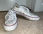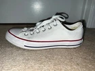 SNEAKERS DESCRIPTION : MADE BY : Converse All Star SIZE : 9 M - Women's COLOR : White DESCRIPTION : Sneakers - Low Top - Lace Up CONDITION : Excellent used condition. Show minor scuffs & wear (see pics) - they still have a lot of life left in them. PAYMENT : Payment is due within 3 days of the end of the auction. SHIPPING : Shipping is via US Post Office ONLY. RETURN POLICY : I list items to the best of my ability and try to describe each item as best as possible. Most of the items I sell are purchased at thrift shops/garage sales/etc, therefore I do not know the history to each item. Unless stated new, they are pre-owned items. I cannot guarantee items I sell are from smoke/pet free homes originally. My home is smoke free, however, I do have pets. Because computer monitors and phone screens vary in their ability to display color, color of the actual item may vary slightly. Color is not an acceptable reason for return. Items may be returned for a refund of bid price only (I will not refund any postage). Refunds will be issued once I receive the item back in the same condition as it left. If you have any problems please email me before leaving feedback. Please check out my other items - I will gladly combine shipping! Email me if you have any questions.