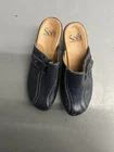 SOFFT London Mules Clogs Slip On Heels Women SZ 6.5 Navy Tooled Leather 1009457
