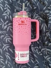 The Stanley Valentine's Day tumbler features a pink design with hearts, perfect for celebrating Valentine's Day in 2025. This 40oz stainless steel tumbler is suitable for both hot and cold beverages and comes with a lid and straw for convenience. The tumbler is insulated to keep drinks at the desired temperature and includes a personalized touch with a colorway of sweet hearts and ruby hearts. This authentic Stanley tumbler is a festive addition to your drinkware collection.