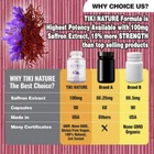 Saffron Extract Supplement 100mg - Powerful Mood Support Saffron Supplements for Support Eye & Heart Health - Antioxidant & Mood Booster Product Details Package Dimensions : 4.37 x 2.2 x 2.2 inches; 1.45 ounces Manufacturer : TIKI NATURE Brand: TIKI NATURE Item Form: Capsule Manufacturer: TIKI NATURE Item Package Quantity: 1 Package Information: Bottle ✅ Extra Strength: Our maximum strength formula contains 100mg of Saffron extract per veggie capsule. ✅ Amazing Benefits: Saffron extract supplementation is thought to support increased energy levels, promote brain health, and support eye & heart health. ✅ Support a Healthy Heart: Known for its powerful antioxidant & anti-inflammatory properties. Now available as easy-to-swallow antioxidant supplement saffron pills. ✅ 90 capsules supply of potent elemental Saffron per bottle. Convenient one-a-day formula. Lasts up to 3 months. ✅ Quality Assured: Made in a GMP certified facility, our product is 100% organic, non- GMO, gluten-free, allergen-free and dairy-free, therefore absolutely safe for use by vegetarians.