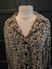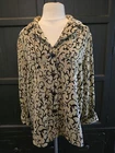 ❤️READ MEASUREMENTS FOR FIT ❤️ Sag Harbor Petite Collared Chenille Shirt Jacket Women's 12P Pre-owned EUC Very nice Chenille shirt jacket in dark tan with all-over floral and vine print in black Notch Collar Turn up cuffs 4 button front. Unlined Soft fabric 60% Polyester 40% Rayon Dry Clean Only Laying flat shirt jacket measures 21.5" from underarm to underarm, 17" from shoulder to shoulder, 28" from shoulder to hem, and sleeve measures 20" ALL MEASUREMENTS ARE APPROXIMATE EXCELLENT Pre-owned Condition ❤️READ MEASUREMENTS FOR FIT ❤️