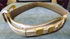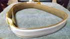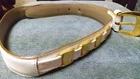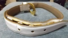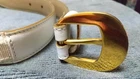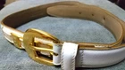 This Salvatore Ferragamo belt is pure elegance—crisp white leather with a sleek gold buckle for a timeless look. Though it shows slight wear, it’s still a luxurious addition to any outfit. Fits waists 23-26 inches, and ships fast from Japan. A must-have for fans of understated luxury!