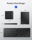 Samsers Foldable Bluetooth Keyboard Portable Folding BT x 1, Black Product Details Product Dimensions: 11.6 x 3.95 x 0.25 inches Item Weight: 10.2 ounces Manufacturer: Samsers Batteries: 1 Lithium Ion batteries required. (included) Brand: Samsers Compatible Devices: Laptop, PC, Tablet, Smartphone Connectivity Technology: Bluetooth Keyboard Description: Flexible Recommended Uses For Product: Everyday Use, Education, Business Special Feature: Portable, Lightweight, Hotkeys and Media Keys, Foldable Color: Black Number of Keys: 104 Style: Contemporary & Modern Product Dimensions: 11.6"L x 3.95"W x 0.25"H 【Foldable Portable Keyboard】Only 6.5-ounce palm-sized keyboard can be folded into your pocket or backpack to carry around. Quiet keys allow you to focus on your work. Standard-size design provides accurate, fast typing, just like the desktop keyboard you are used to. Maximum convenience for you with minimum weight and size! 【Compact Travel Keyboard】 Compact pocket size design to easily carry it with you. Magnetic lock keeps it closed while traveling. Auto-reconnect function allows automatic reconnection to the last connected device when turning on. Maintains a stable connection and provides fast response to devices within 10 meters of operating range. With Samsers folding keyboard, you can start writing down your thoughts, replying to emails, editing excel sheets quickly anywhere! 【Long Battery Life】Easily recharged via the included Type-C cable. Built-in large capacity battery can be used for 60 hours of continuous operation or 90 days of standby. One full charge last enough for your short business trip or vacation! 【Folding Bluetooth keyboard 】Comes with a foldable phone holder that transforms your tablet into a laptop in less than a second. 6 adjustable angles to meet your different viewing needs! Work or leisure when you go to different places like cafes offices or libraries~ 【Sincere Service】Samsers provides you with 24-hour email reply and lifetime technical support. If you have any questions, please feel free to contact us! ~ 【Warm tips】 After receiving the keyboard, please keyboard for 2 hours fully charged, the battery power will lead to abnormal battery function