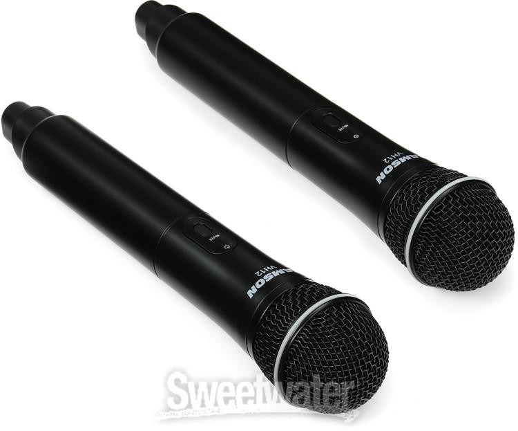 Impressive Wireless Value If you want exceptional value in a wireless microphone package, then you need to check out Samson's Stage 212. This 2-channel wireless handheld microphone system makes cutting the cord easy and cost effective, providing you with two independent wireless channels for less than the cost of a typical wireless system. Claim up to 200' of wireless freedom thanks to crisp and clean VHF bandwidth, while IR sync makes these systems as easy to set up as anything Sweetwater sound techs have worked with. And whether you're going on the road or just worried about taking your mics onstage, this rugged Stage 212 system, with its metal-bodied Q6 mics, can handle it.Built to last and made to perform A lot of affordable wireless systems cut costs by going cheap on materials, swapping out more robust parts for plastic. Samson avoids that pitfall with the Stage 212 system. The Sweetwater is an Authorized Samson Dealer Genuine New Item Sweetwater's 2-year warranty Samson Stage 212 Dual-channel Handheld VHF Wireless System 2-channel VHF Wireless Handheld Microphone System with Rackmount Receiver, Front-panel Volume Controls, and Easy Frequency Setup Functions Impressive Wireless Value If you want exceptional value in a wireless microphone package, then you need to check out Samson's Stage 212. This 2-channel wireless handheld microphone system makes cutting the cord easy and cost effective, providing you with two independent wireless channels for less than the cost of a typical wireless system. Claim up to 200' of wireless freedom thanks to crisp and clean VHF bandwidth, while IR sync makes these systems as easy to set up as anything Sweetwater sound techs have worked with. And whether you're going on the road or just worried about taking your mics onstage, this rugged Stage 212 system, with its metal-bodied Q6 mics, can handle it. Built to last and made to perform A lot of affordable wireless systems cut costs by going cheap on materials, swapping out more robust parts for plastic. Samson avoids that pitfall with the Stage 212 system. The receiver is in a metal chassis, meaning you can toss it in your gear bag or a case and not worry about it getting beat up. The mics themselves are metal too, with tough grilles that can handle getting dropped. Add to that high-quality balanced outputs and sturdy controls, and you have a system that certainly doesn't feel like a budget model. Frequency-agile VHF operation When it comes to analog wireless, bandwidth and frequency range aren't all that are important. In many cases, who these things are managed is equally, if not more, important. With its frequency-agile technology, the Stage 212 constantly seeks out the cleanest frequency band, ensuring clean and clear transmission. On that note, VHF has changed a lot since the DTV standard went into effect over a decade ago. Where once this wireless range was cluttered and often unusable, today it's a truly reliable option. Easy to set up, easy to use With 12 channels to choose from across the 173MHz–198MHz VHF frequency range, you might imagine the Samson Stage 212 handheld wireless microphone system would be a pain to set up. It isn't. In fact, thanks to its IR sync function, setting up is a breeze, allowing you to wirelessly match each mic to a channel almost instantly. From there, you can take full advantage of 200' of transmission and up to 10 hours of running time on just a pair of easily replaceable AA batteries. Samson Stage 212 Wireless Handheld Microphone System Features: Super-convenient, dual handheld VHF wireless system Perfect for small performance spaces, karaoke, presentations, and more Q6 dynamic microphones with integrated transmitters deliver up to 10 hours of operation on 2 x AA batteries 12 operating channels across 173MHz–198MHz frequency range IR sync wirelessly matches receiver and transmitter frequency 200' line-of-sight operating range Robust metal design easily holds up to live-sound conditions Balanced XLR mix and individual 1/4" outputs let you connect to professional sound gear Specification Detail Simultaneous Systems Per Band Up to 3 System: Analog/Digital Digital System: Frequency Range 173-198 MHz System: Operating Range 200 ft. Line-of-sight System: Frequency Response 80Hz-15kHz System: Microphone Included Yes, 2 x Q6 Microphones System: Channel Selection Auto/Manual Microphone: Type Dynamic Microphone: Polar Pattern Supercardioid Microphone: Frequency Response 50Hz-15kHz Transmitter: Form Factor Handheld with Mic Capsule Transmitter: Dynamic Range 100dB (A-weighted) Transmitter: Mute Feature Yes Transmitter: Battery Type 2 x AA Transmitter: Battery Life Up to 10 hours Transmitter: Dimensions 10" x 2.1" Transmitter: Weight 0.48 lbs. Receiver: Antenna Type Fixed Receiver: Type Table Top Receiver: Displays LED Receiver: Outputs 1 x XLR, 2 x 1/4" Receiver: Power Source 15V DC power supply Receiver: Dimensions 8.2" x 5.7" x 1.4" Receiver: Weight 1.3 lbs. RETURN INFORMATION We want you to be completely happy with your purchase from Sweetwater. If you are not satisfied with your product, you may return it for a refund of the purchase price within 30 days. If your purchase was eligible for Free Shipping, the shipping cost will be deducted from your credit or refund. Returns must be in the complete and original packaging with all accessories and complete documentation (Owner's Manual, warranty card, quick start guides, etc.), show no signs of wear or use, and include a Return Authorization number or be subject to a restocking fee.