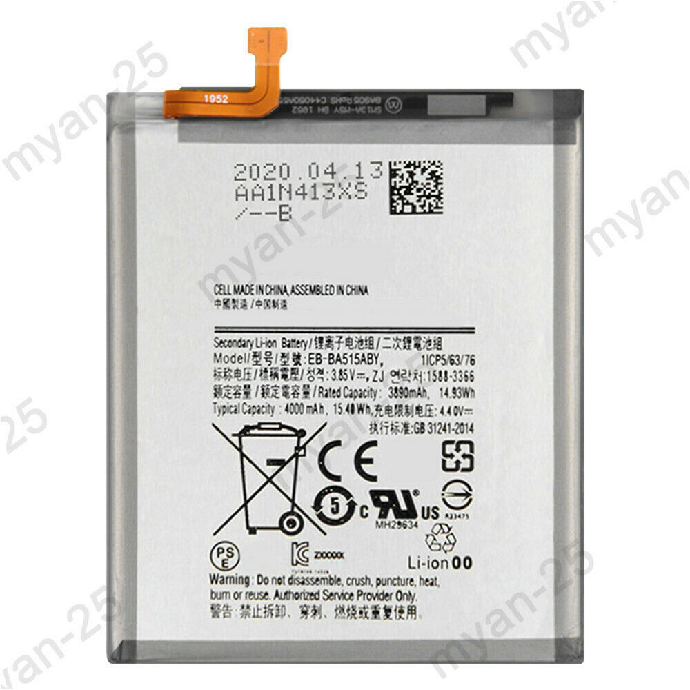 Samsung Galaxy A51 2019 A515 A515F A515U Battery EB-BA515ABY EB-BA515ABE Tool Package includes: 1 x Battery 1 x Tool kits Notice: 1. Each item was 100% Tested Before Shipping. 2. Fast free ship, send from C.A. by USPS. Estimated delivery time for domestic (USA) orders is 3-7 days. 3. New batteries often display virtual power. In this case, you need to charge the battery to a full charge state, after running out of electricity, then charge it to full charge again. After doing this several times, it will be normal. 4. We offer 30 days refund or exchange policy on defective or wrong items since you receive the item. 5. Any queries or issues incurred, please feel free to contact us via eBay messages, we are always here ready for help.