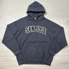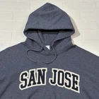 San Jose Hoodie Pullover Sweatshirt Y2K Size L Blue Embroidered Seller does NOT accept returns. See photos for measurements & flaws. Sizes vary depending on manufacturer & era. Please review item description, flaws & sizing prior to purchasing.