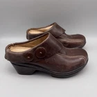 Sanita Clog Shoes Womens Size 37 EU Brown Leather Slip On Button Wedge 444690 Shows scuffs, scratches, and creasing on leather uppers. Footbeds clean; soles show light wear with solid tread. Buttons and stitching secure. Brand: Sanita Style: Womens clog/mule shoes with side button strap and wedge heel. Color: Brown Size on tag: 37 EU Materials (per stamp): Leather upper; leather/fabric lining; balance man made. Details: Slip-on design, double button detail, contrast stitching, cushioned footbed, slip-resistant outsole. Branding: Sanita logo on insole and outsole. Style/Model code: 444690; Made in China. 557.5 Measurements: - Previous washings may change the sizing written on the tag. - Please refer to the photos above for all measurements. - Please compare our measurements to that of one of your favorite garments. - Please note, item measurements are approximate . All items are bagged and sealed after being photographed, then stored in a smoke free environment to ensure the item is exactly the same as when photographed. All items have been washed per eBay standards & policies. I carefully package and ship daily. Feel free to contact me with any questions.