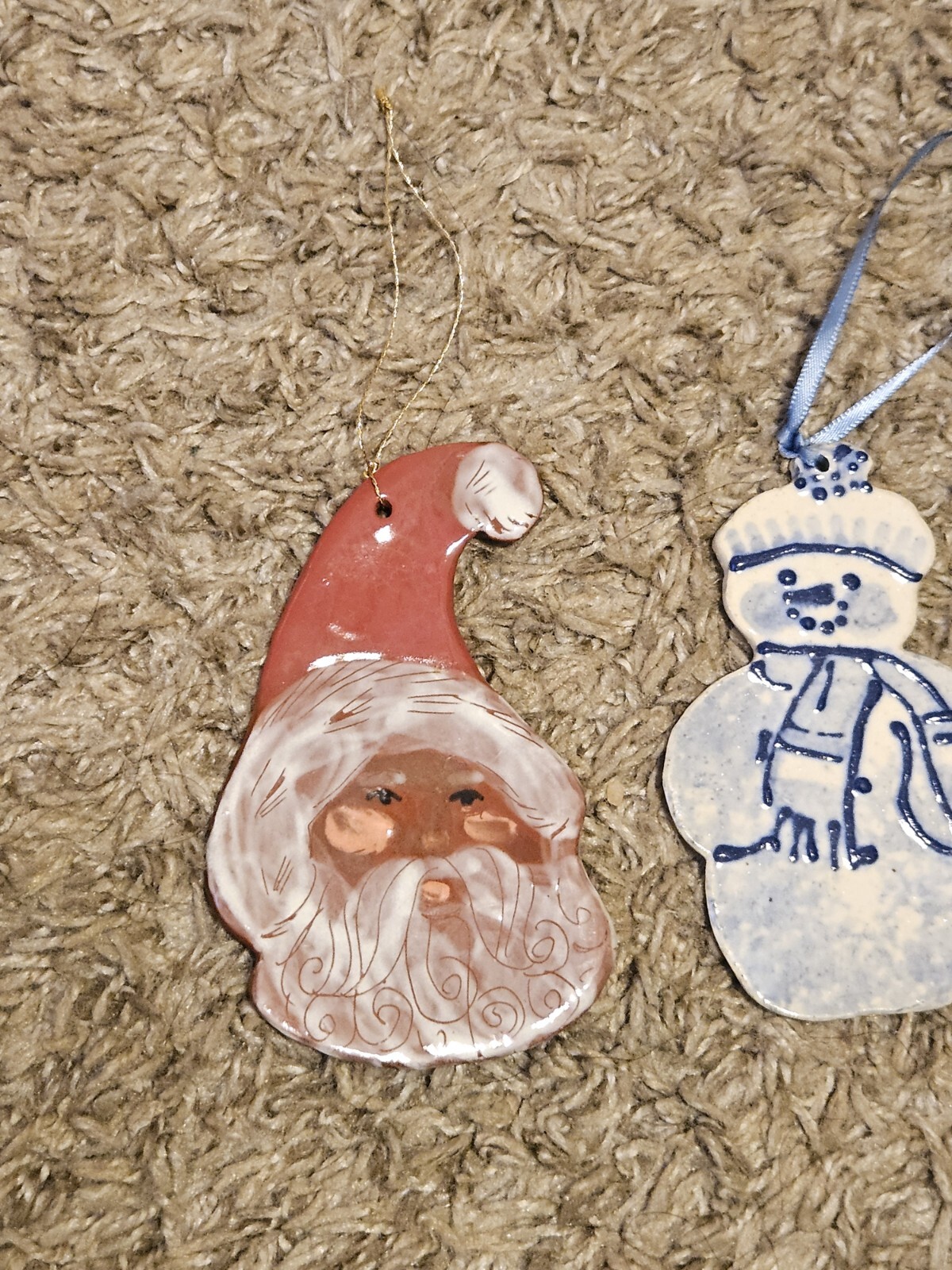 Material:CeramicBrand:HandmadeType:OrnamentSize:MediumShape:Santa ClausNumber of Items:2Color:MulticolorOccasion:ChristmasTheme:ChristmasCharacter Family:Snowman