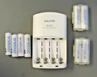 Sanyo Model NC-MQN06U Ni-MH Battery Charger for AA and AAA Batteries, PLUS 8 Eneloop HR-3UTGA (1900 mAh) AA Rechargable Batteries. Very slightly used, in excellent condition, see pictures. The Sanyo NC-MQN06U charger charges pairs of AA cells at 300 mA and pairs of AAA cells at 150 mA. Features of Eneloop batteries Eneloop technology: 6th generation high capacity NiMH batteries with superior charge retention makes Eneloop batteries ideal for virtually all situations where alkaline or lithium AA / AAA size batteries are currently used. Pre-charged and ready to use straight from the pack. Recharges up to 2100 times. You'll use hundreds of alkaline batteries just to match the overall life and performance of Eneloop batteries. Low self discharge means eneloop batteries are still ready for use even after long periods of storage - up to 65% after 5 years! Environmentally friendly - Eneloop batteries and packaging are completely recyclable. Rechargeable on most standard & fast chargers designed for NiMH batteries. Made in Panasonic Wuxi Plant.