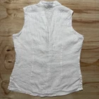 This is a Sarah Spencer sleeveless linen blouse in peach, featuring a V-neckline and button front closure. It is a size M, perfect for the summer and spring seasons. The blouse is suitable for various occasions such as travel, parties, casual, formal, or business events. Its style is basic and can be worn as a fairy vest top.