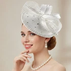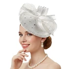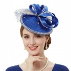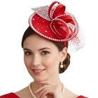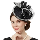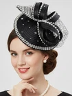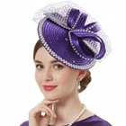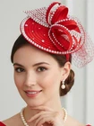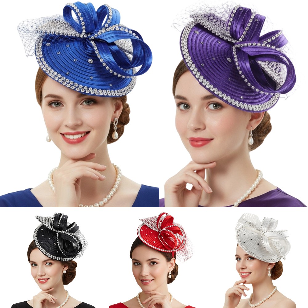 Satin Fascinator Fancy Hair Accessory Party Hat Rhinestone Headdress with Veil;