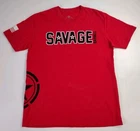 Upgrade your gym wardrobe with this Savage Barbell T-Shirt. Made with a blended fabric that is both breathable and stretchy, this red shirt is perfect for bodybuilding and gym training. The crew neck and short sleeves make it a basic and modern piece of activewear that is suitable for summer, fall, and spring. This T-shirt is designed for men in size L and features a solid pattern with a light fabric wash. It is easy to care for as it is machine washable. The pullover closure and fitted sleeves provide a comfortable fit that is perfect for a workout. Get your hands on this Barbell Apparel T-shirt, perfect for any gym-goer.