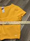 chic and comfortable Savage X Fenty yellow baby tee. Featuring a scoop neck and short sleeves, this knit top is made of lightweight and breathable cotton material that makes it perfect for any season. The top is accented with buttons and is perfect for travel and casual occasions. This cropped top is a must-have for fans of 90s and Y2K vibes, grunge, and bohemian fashion. Its solid pattern and regular fit make it a versatile piece that can be paired with any bottom. It is machine washable and easy to care for. Get your hands on this retro-inspired top today!