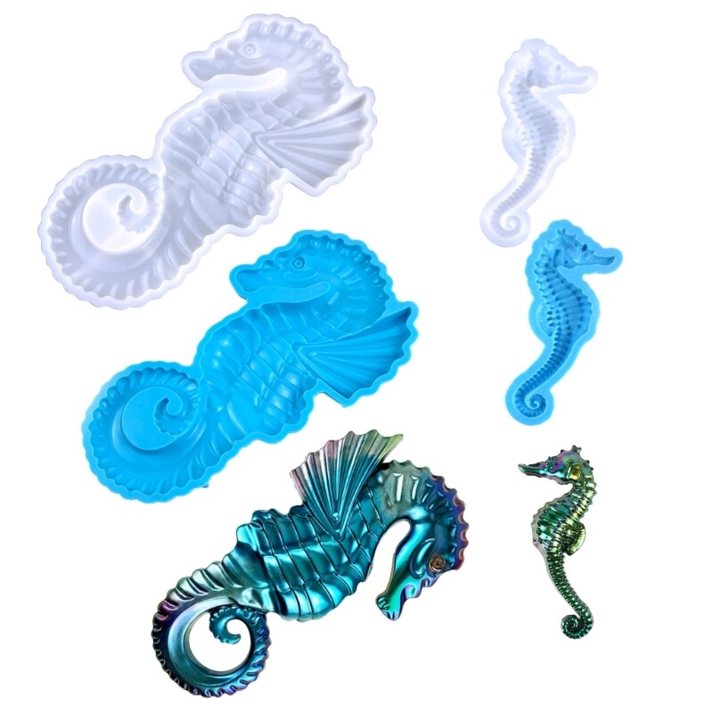 Features: Durable, temperature resistant, novel in shape, soft and comfortable, easy to demold, and easy to clean without permeation.Temperature -40~240℃. Suitable for bar, restaurant, residential decorations. Uses: gypsum, resin, crystal and so on. Can be applied to DIY different handicrafts and accessories. Keep the inside of the resin jewelry mold smooth and clean before use. After the product are completely cured, it can be easily ejected from the silicone mold. Wash the epoxy mold with soapy water and store it away from direct sunlight and dust. Specifications: Material: Silicone Color: Transparent/Blue Size: As Shown in the Pictures Package Includes: 2x Seahorse Keychain Moulds note: Please allow 1-2cm errors due to manual measurement. Due to the difference between different monitors, the picture may not reflect the actual color of the item.