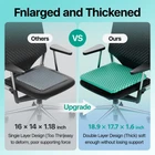 【Large size & Help Relieve Pain】seat cushion size is 18.9 x 17.7 x 1.6 inch, weight about 2.6lb.Double-layer cushion design. Not only thicker, but also more comfortable effectively prevent and alleviate various pain symptoms, including tailbone problems, lumbar strain, sciatica, and degenerative disc disease. 【Breathability and heat dissipation】Our seat cushion adopt a honeycomb design, and the built-in free-flowing air channel prevents the seat from sweating and maintains comfortable heat dissipation. 【Super soft & hard to deform】The cushion has cushioning property that it does not break even if you put an egg and sit down. In addition, it is characterized by highly elastic material, it restores to its original shape as soon as it is stretched and squeezed and has superior durability than a conventional cushion. 【Applicable scope】Chair pad is great for office, home, travel, car seat, or wheelchair use, suitable as gifts for family, friends, and colleagues. 【Zipper design, easy to clean】The zipper design and detachable seat cover can better clean the seat cushion. This way you can use the seat cushion without worrying about soiling the seat.