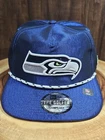 Elevate your headwear collection with the Seattle Seahawks New Era The Golfer Rope Snapback Adjustable Hat. This stylish baseball cap is perfect for any occasion, whether you're hitting the golf course or attending an NFL football game. The cap features a solid blue color with the team's logo prominently displayed on the front. The cap is made by renowned brand New Era and is designed to be adjustable, ensuring a comfortable fit for all head sizes. It also has a rope detail that adds a touch of sophistication to the design. This cap is perfect for men who love sports and want to show their support for their favorite team.
