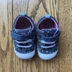 See Kai Run First Walkers Toddler shoes, size 5 , denim/chambray with floral print. One strap across the top. Easy on/off Retails new for $50 The best first shoes - roomy, flexible, and stable. Fits comfortably on chubby little feet. In great preowned condition. Purchased new and used by one child. Clean and ready to be used by another little one. $5 flat rate shipping . Please reach out with any questions!