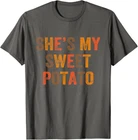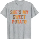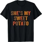 Set Couples Thanksgiving She's My Sweet Potato I Yam T-Shirt Designed and Printed in USA Product Features: • Classic Look and Feel: This ultra cotton tee offer the timeless appeal of traditional cotton. The high-quality print enhances its casual appearance. • Material: Made from 6.1-ounce, 100% cotton. (Note: Dark Heather variant is 50% cotton, 50% polyester.) • Durability: Features double-needle stitching on the neck, sleeves, and hem for added durability. Designed for a roomy, unisex fit. • Print Type: DTG (Direct to Garment) • Manufacturer: Gildan 5000, 5000b (Made in USA) Shipping Information: • Handling Time: With POD(Print-On-Demand) product model, we typically require about 3 business-days handling time before shipping. In most cases, our handling time’s , rang e from 1-2 business days. • Delivery Time: • USA: Approximately 2 -6 business days • Canada: Approximately 6-10 business days (We currently don’t offer international Shipping) • Worldwide: Approximately 15-25 business days (We Currently don’t offer international Shipping) • Shipping Carriers: USPS and DHL • Note: Business days exclude weekends and holidays. Return & Exchange Policy: • Quality Guarantee: We stand behind the quality of our products and workmanship . Any defects or errors on our part must result in a refund/ replacement at no charge. • Conditions for Returns: Returns are generally not accepted for user errors such as incorrect selection of sizes, designs, or colors. Returns /Replacements are acceptable for damages such as poor printing results, incorrect size or design caused by us. • Note: Please reach out to us if there are any questions or issue s with your item, we’ll do our best to resolve any issue you might have. Note: • We’re glad to have your support! If you have a moment, y our honest feedback is very valuable to us. Thank you!