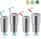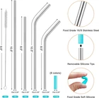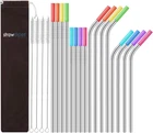 Set of 16 Reusable Stainless Steel Straws with Travel Case Cleaning Brush Silicone Tips Eco Friendly Extra Long Metal Straws Drinking for 20 24 30 oz Tumble About this item 【Premium Material】These drinking straws are made of GENUINE premium, silver-colored 18/8 stainless steel.Unlike other cheap straws with low weight and bent easily, our straws have thicker walls, so that they are very strong, not too heavy nor too light. 【High Quality Polishing】With our polishing technique, the surface of our straws are well polished, very smooth for your lips and hands to touch and it is easier to get the silicone caps on/off than other metallic staws. Our metal straws have smooth rounded edges at each tip,they won't cut your lips or gums by accident even without the silicone sleeves. 【Safe to Use and Environmentally Friendly】These sustainable straws and the covers are made of food grade stainless steel and silicone,no metal aftertaste, BPA free,lead free, non plastic,non toxic.They are extremely durable,dishwasher safe,washable,rust and scratch proof. One stainless steel straw can last for years and replace hundreds of plastic straws for you. 【Variety Pack and Shape】the various sizes give you many different cup options you could use them with.8pcs ultra long 10.5 inch straight and bent straws for 24 oz,30 oz,32 oz and 34 oz tumblers,8pcs regular size 8.5 inch straight and curved straws for 16 oz and 20 oz mugs or water bottles.These tall straws are perfect for drinking cold bevarage,cocktail,coffee,iced tea,soda or any other liquid drinks. 【Awesome Accessories】SILICONE COVERS - They keep your lips from getting too cold or too hot and protect your teeth and lips from chipping.There are eight different silicone top colors to serve as identifiers for your family. SCRUB BRUSHES - With the 2 extra long 9.5" cleaner,you can clean the inside of the recyclable straws from top to bottom easily.PORTABLE CARRYING POUCH – This kit includes a helpful travel case so you can bring some of your reusable straw with you on the go.