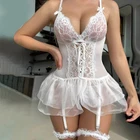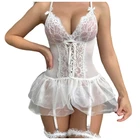 Sexy Polka Dot Backless Sexy Sleepwear Lace Mesh Nightdress Set Features: Top design: The steel ring underwear set with lace cup adopts seam design to provide better gathering support. The fan-shaped lace edge enhances feminine temperament, shapes sexy bust line, adjustable shoulder strap provides , and the hook and eye back closure is convenient for wearing. Bottom design: sexy thong underpants with high waist strap and adjustable garter belt perfectly show your lengthened leg line, sexy and provocative (please note that socks are not included) materials: unique embroidery decoration perfectly shows sexy body lines, full of Applicable occasions: suspenders, socks and underwear suit are very suitable for wedding night, Valentine's Day present, anniversary candlelight dinner or spending the night with your lover Occasion:Sexy Product Description: Sexy Polka Dot Backless Sexy Sleepwear Lace Mesh Nightdress Set Material: Lace Color: as the picture shows, (Due to the difference between different monitors, the picture may have slight color difference. please make sure you do not mind before ordering, Thank you!) Package weight: 100g Package size: 20x10x1cm,(Please allow 1-3mm error due to manual measurement. please make sure you do not mind before ordering.) Size Bust Waist Hip S 80-84cm/31.50-33.07'' 64-68cm/25.20-26.77'' 88-92cm/34.65-36.22'' M 84-88cm/33.07-34.65'' 68-72cm/26.77-28.35'' 92-96cm/36.22-37.80'' L 88-92cm/34.65-36.22'' 72-76cm/28.35-29.92'' 96-100cm/37.80-39.37'' XL 92-96cm/36.22-37.80'' 76-80cm/29.92-31.50'' 100-104cm/39.37-40.94'' XXL 96-100cm/37.80-39.37'' 80-84cm/31.50-33.07'' 104-108cm/40.94-42.52'' Size:S Bust:80-84cm/31.50-33.07'' Waist:64-68cm/25.20-26.77'' Hip:88-92cm/34.65-36.22'' Size:M Bust:84-88cm/33.07-34.65'' Waist:68-72cm/26.77-28.35'' Hip:92-96cm/36.22-37.80'' Size:L Bust:88-92cm/34.65-36.22'' Waist:72-76cm/28.35-29.92'' Hip:96-100cm/37.80-39.37'' Size:XL Bust:92-96cm/36.22-37.80'' Waist:76-80cm/29.92-31.50'' Hip:100-104cm/39.37-40.94'' Size:XXL Bust:96-100cm/37.80-39.37'' Waist:80-84cm/31.50-33.07'' Hip:104-108cm/40.94-42.52''