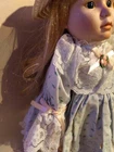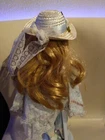 The Seymour Mann Connoisseur Collection Trudy Porcelain Doll is 16.5 inches tall and comes with a stand. This vintage doll features blonde, wavy hair and blue eyes. The doll's light complexion and delicate features make her a lovely addition to any doll collection. Created by Seymour Mann Dolls, this original doll is from the 1990-1999 time period and is made of porcelain. Please see photos for exact condition. Few small spots as shown. All offers considered. Will combine shipping on multiple items.