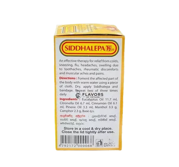Siddhalepa 5g x 5 Herbal Pack for Cold & Flu & Headache DESCRIPTION- An effective therapy for relief from colds, sneezing, flu, headaches, swelling due to toothaches, rheumatic discomforts and muscular aches and pains. BENEFITS:- Soothes sports related soreness such as muscle and bone aches. Provides temporary relief from colds and flu. Relieves common pains such as toothaches and headaches. Aids in relieving rheumatic discomfort. DIRECTIONS:- Foment the affected part of the body with warm water using a piece of cloth. Dry, apply Sidhdhalepa and bandage. Repeat two of three times daily. SHIPPING POLICY:- Items will be shipped within 1 business days from Sri lanka Post or fast shipping method (upon your request) after clearance of payment International tracking number will provided. (USA) The item will be shipped to your ebay registration address. Therefore please make sure your 'Ship to' address on ebay is correct. Arrival time depends on your location. (USA - 15 - 30 Days) Other Countries (15 - 35 Days) For the delivery to you take more days. It's may be too longer according to postal service process, custom process, Holiday, Weather, or any other unexpected reason. If you don't received your package according to this schedule, please do not hesitate to communicate with us. Import duties, taxes and charges are not included in the item price or shipping charge. These charges are the buyer?s responsibility. Therefore please check with your country's customs office to determine what these additional costs will be prior to bidding/buying. Also, before buying please check your country import restrictions. PAYMENT POLICY:- We accept Payoneer, Visa, MasterCard, American Express RETURN POLICY:- Domestic and International returns are accepted within 30 days. We will try our best to resolve any dispute. Also if you?re not satisfied with our product, please contact us through ebay "Ask Seller Questions" We consider any offer and full refund for any item excluding shipping cost (if you have asked fast shipping method) ABOUT US:- Our goal is provide high quality product & excellent service for our buyers with competitive prices. Your satisfaction is our pleasure. Your positive feedback will encourage us.