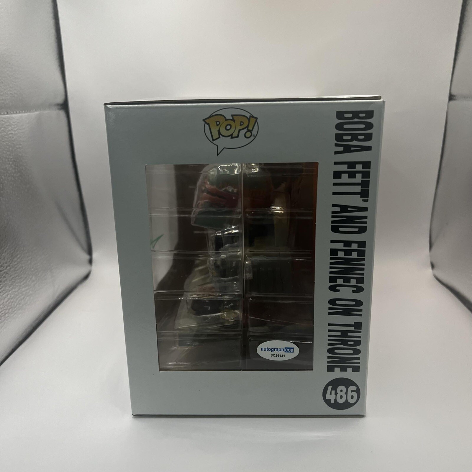 This is a rare opportunity to own a signed Funko Pop #486 featuring Boba Fett, Temuera Morrison, and Fennec on Throne from the popular Star Wars series. This vinyl figure is a must-have for any collector and fan of the franchise. The autographs of the characters add extra value to this unique item, making it a true gem. The Funko Pop #486 model is part of the Pop product line and was released as a comic-con special in 2021. The figure is made of high-quality vinyl and features intricate details that capture the essence of the characters. This collectible is perfect for display or as a gift for a Star Wars fan.