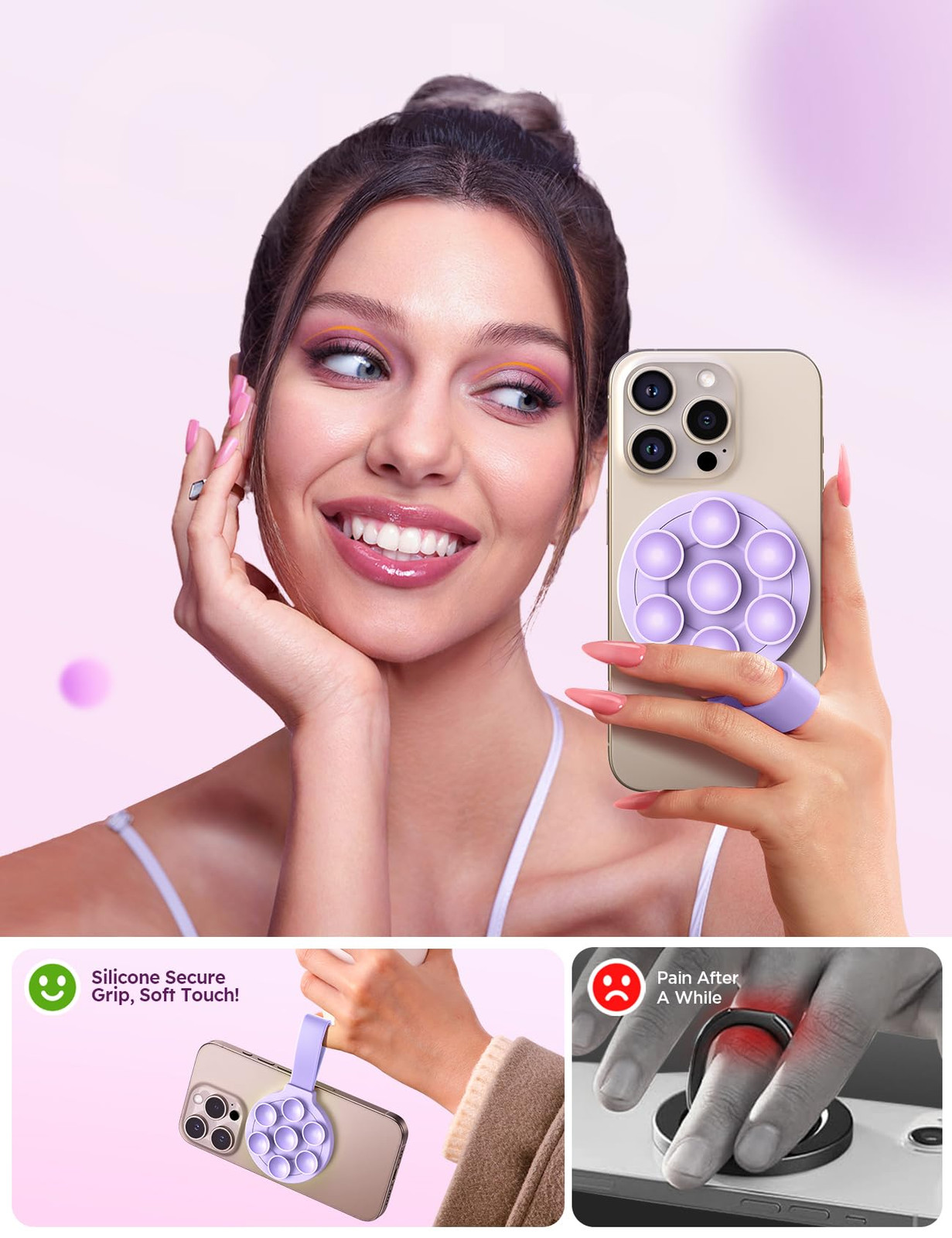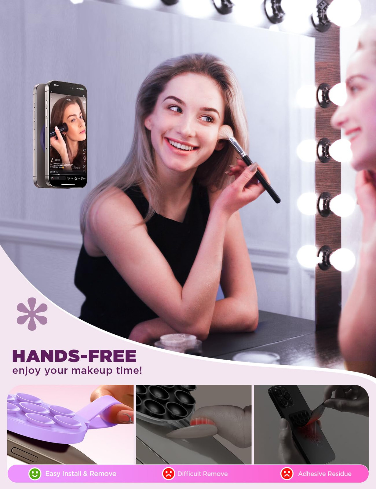 ✔️【Fantastic Phone Holder】– The innovative magnetic silicone suction phone mount can stick your phone on any smooth surface to take pictures, videos, chat or watch movies. Let you get rid of the heavy tripod and create social media content anytime, anywhere. 🧲【Strong Magnetic & Adsorption】 – Each mobile phone holder has big independent suction cups to provide stronger and more reliable support, so you can worry less about it falling or dropping while you’re capturing great shots. Magnetic stand holder with up to 2.2lbs Magnetic force, it can directly snap bare fit with iphone 16/15/14/13/12 series (❗❗Note: If use Non-Magnetic Regular phone/phone case, you have to use our metal ring to enhance magnet, enabling this function.❗❗) ✔️【Ideal for Content Creators】 – Whether you're an influencer, TikTok creator, Instagram creator, YouTube creator, or just love sharing content, the Magnetic silicone suction phone Holder is perfect for capturing those shareable moments.This is the best Christmas ideal for family and friends! ✔️【Put-and-Reove Easy】– Our Magnetic silicone mount attaches to stick your phone on any smooth surface, such as vanity mirrors, glass windows, computer screens, refrigerators, tiles, etc. At the same time it can be easily detached without leaving unsightly adhesive residue, making it reusable! 👍【Business Care Never Stop】 – Contact the support team at any time. Every magnetic suction cup phone mount is backed by unbeatable customer service and support, long-lasting durability, and quality control you can count on, so you can be sure you’re getting a product that fits your everyday and perfect for your on-the-go lifestyle!
