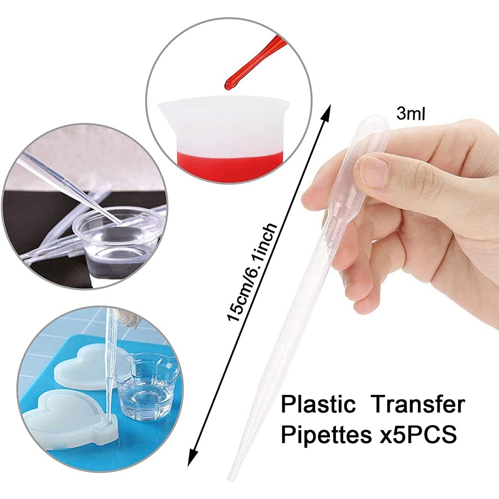 Silicone Measuring Cups for Epoxy Resin, Reusable Mixing Cups Resin4650 Silicone Measuring Cups: Non-stick , accurate scale and pour spouts allow to transfer liquid precisely. The 100ml and 250ml measuring cups fit for capacity requirement, like making larger resin crafts, 10ml cups for small amount liquid mixing use, multiple sizes meet your different desire. Easy to Clean and Reusable: Silicone container is smooth and non-stick, easy to wash and dry after use. Soft and flexible, and reusable, disposable or plastic cups, eco and reduce waste. Prevent Spillage: It has a long and pointed diversion port to make the pouring easier and more accurate, and effectively prevent the liquid from remaining on the outer wall of the cup and keep it clean. Wide Application: The complete and practical tools kit saves your time and effort. Graduated measuring cups are imprinted with precise scales to do the easy measuring, pouring, and mixing work. Perfect epoxy resin DIY such as notebook cover, glitter tumbler, earring, jewelry craft, etc. Colour: transparent Material: silicone Package Contents: 1 * 250ml Measuring cup 3 * 100ml Measuring cup 3 * Glue cup 20 * Stirring rod 5 * Dropper Only the above package content, other products are not included. Note: Light reflection and different displays may cause the color of the item in the picture a little different from the real thing. The measurement allowed error is +/- 1-3cm.