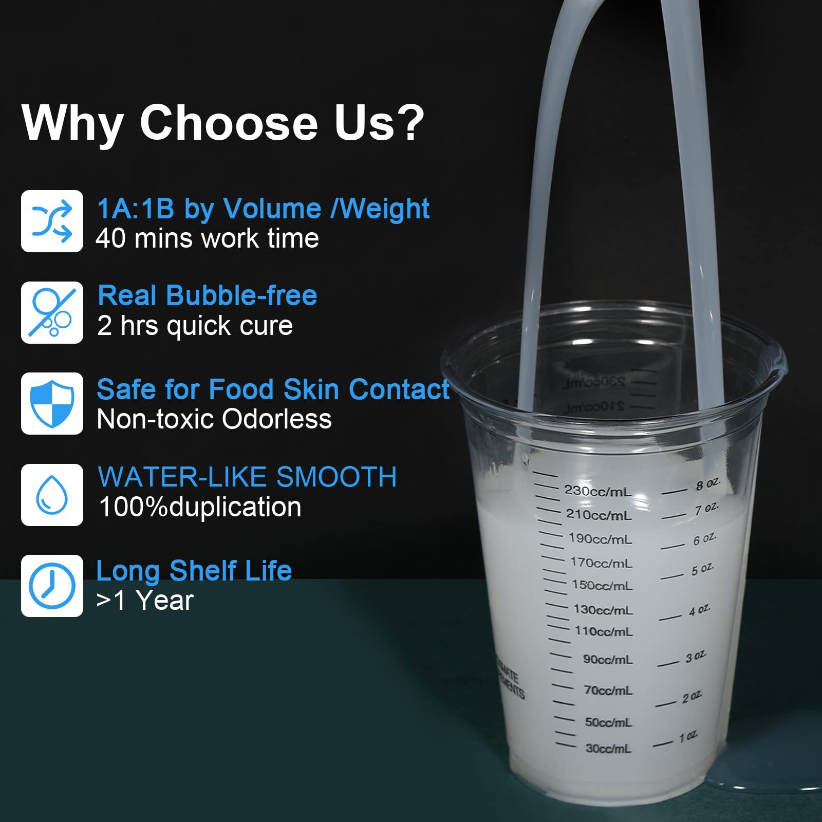 Silicone Mold Making Kit, 84oz 10A Elastic Liquid Silica Gel for Casting Resin molds and Candle & Soap Mold,Fast Cure Translucent Platinum Silicone Rubber 【84.6oz Mold Making Kit】: This silicone mold making kit comes with 2 bottles of liquid silicone, each bottle containing 1200g/42.3oz of platinum cure silicone, as well as 6 bags mica powder,10pcs wooden mixing sticks,10pcs disposable protective gloves; a perfect slicone mold kit for beginners to try, satisfying your various needs. 【Premium Silicone Materials】: The silicone mold finished with food grade silicone rubber features highly elastic and excellent flexibility, this silicone hardness:10A,and can be replicated accurately down to the tiniest details, great for making 3D silicone molds or flat resin molds. And due to its excellent elasticity, you can easily de-mold the items from the 3D silicone molds without cutting them out. 【Easy To Blend & Fast Curing】:This silicone molds making kit includes part A and part B with mix ratio is 1:1 by weight. Just pour the equal Part A and Part B together, then Stir evenly, the working time is within 40 minutes and the cure time is 2~ 4 hours at room 22℃(71.6℉) temperature. The final curing time varies on your molds size and thickness and the curing temperature.A high ambient temperature will shorten the curing time, and vice versa. 【No Bubbles】: No vacuum degassing is necessary! The bubbles of silicone for mold making will automatically disappear within 1.5 hours at room temperature due to its low viscosity(viscosity 1500) feature. Tips:We provide 6 bags of mica powder in different colors, which can bring exciting colors to your silicone mold. 【Wide Application & Long Shelf Life】: high-performance liquid silicone is widely used for mold making of arts crafts, like casting Resins, Wax, Gypsum, Concrete, Soap, Candle and also can be used as Molds Making for Candy, Chocolate, Cake and Ice Cubes.Our liquid silicone has a very long shelf life of over 1 year. This silicone mold making kit comes with 2 bottles of liquid silicone, each bottle containing 1200g/42.3oz of platinum cure silicone,The silicone mold finished with food grade 10A silicone rubber features highly elastic and excellent flexibility, and can be replicated accurately down to the tiniest details, great for making 3D silicone molds or flat resin molds. And due to its excellent elasticity, you can easily de-mold the items from the 3D silicone molds without cutting them out.This silicone molds making kit includes part A and part B with mix ratio is 1:1 by weight. Just pour the equal Part A and Part B together, then Stir evenly, the working time is within 40 minutes and the cure time is 2~ 4 hours at room 22℃(71.6℉) temperature. The final curing time varies on your molds size and thickness and the curing temperature.A high ambient temperature will shorten the curing time, and vice versa. Shipping We offer FREE shipping on all orders! We ship within Three business days of payment, usually sooner. We use a selection of shipping services such as UPS, FedEx, USPS etc. We only ship to the lower 48 states, no APO/FPO addresses or PO Boxes allowed. Local pickups and combined shipping options are not provided at this time. Return You can return a product for up to 30 days from the date you purchased it. Any product you return must be in the same condition you received it and in the original packaging. Please keep the receipt. Payment We accept payment by any of the following methods: PayPal Please pay as soon as possible after winning an auction, as that will allow us to post your item to you sooner! Feedback Customer satisfaction is very important to us. If you have any problem with your order, please contact us and we will do our best to make you satisfied. Contact Us If you have any queries, please contact us via ebay. We usually respond within 24 hours on weekdays. Please visit our eBay store to check out other items for sale! Thank you for shopping at our store.
