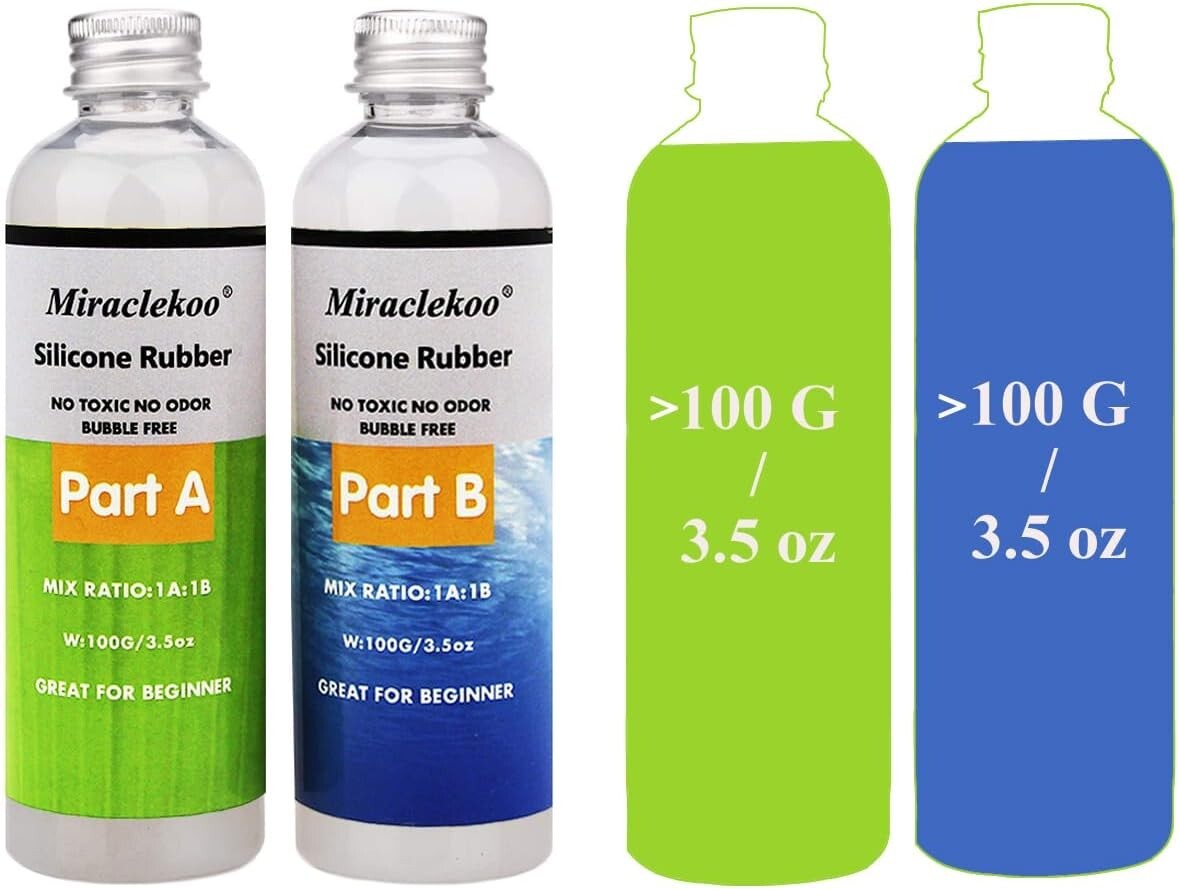 EASY TO USE - No special skills or tools are needed.The silicone mold making kit includes part A and part B, the mixing ratio is 1:1 by weight. Pour the Part A and Part B together, then stir 5-6 minutes, make sure to stir the mixture thoroughly for better results SAFE - Our silicone rubber is made of safe silicone material, high-quality,non-toxic and odorless, very flexible, soft and transparent PREMIUM - Our silicone rubber with self-debubbling,the bubbles will automatically disappear within 2 hours, no vacuum degassing is necessary. The completely cure time is about 4-6 hours at room temperature, it varies from your mold size and thickness.Please note:The curing time is affected by the temperature. If the curing is too fast, it can be slowed down by cooling before use. If the curing is too slow, it can be accelerated by heating WIDELY USE - Excellent for making resin molds, wax molds, candle molds, soap molds, casting molds and so on. ATTENTION:Not for making food mold use PLEASE NOTE:mixing without using silicone cup and molding without using silicone mold.Because they're silicone, they will fuse PLEASE NOTE:certain chemicals can inhibit the curing process,and sulphur is one of them.Don't use sulphur plasticine clay