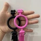 Feature: 1 00% brand new and hiqh quality Material: Silicone Color: pink/b lack Belts are adjustable. 56cm, lockable buckled Size ring : approx 5 cm Quantity: 1 piece Friendly Tips: The size is measured by hands, please allow minor error of measurement.