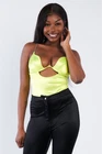 Returns are accepted however, they must be made within 7 days of receipt and you message me through eBay for instructions on how to return the item. Introducing our Silk Chain Spaghetti Strap High Thong Center Cut Out Bodysuit in vibrant Neon Yellow. This bodysuit is crafted from sheen silk, featuring thoughtful design elements that add a touch of glamour and allure to your wardrobe. Key Features: 1. Material: Made from 95% Polyester and 5% Spandex, this bodysuit offers a luxurious sheen silk fabric with a slight stretch for a comfortable and flattering fit. 2. Design: The spaghetti straps provide an elegant look, complemented by silver chain hardware details for a touch of sophistication. The underwire adds structure, and the center keyhole cutout creates a captivating focal point. 3. Thong Style: The high thong design adds a modern and sleek touch, ensuring a seamless look under clothing. 4. Color: The Neon Yellow hue adds a bold and energetic pop of color to your wardrobe. 5. Unlined: This bodysuit is unlined, allowing the sheen silk to delicately enhance your silhouette. Product Details: - Glamorous Appeal: The combination of sheen silk, silver chain hardware, and the center cutout makes this bodysuit a statement piece for special occasions. - Comfortable Fit: The slight stretch and thoughtful design elements provide both comfort and style. - Versatile Styling: Wear it alone for a daring look or layer it under a jacket or sheer top for a more subtle yet chic appearance. Why Choose Silk Chain Spaghetti Strap High Thong Center Cut Out Bodysuit? - Elegance and Edge: The sheen silk, chain hardware, and center cutout bring a perfect blend of elegance and edginess to your outfit. - Versatility: Whether you're heading out for a night on the town or want to make a bold statement, this bodysuit is a versatile choice. Ideal Occasions: Perfect for a night out, special events, or whenever you want to showcase your bold and confident style. Customer Reviews: "This bodysuit is a showstopper! The Neon Yellow color is stunning, and the chain details give it that extra edge." - A. S. "I love how comfortable and stylish this bodysuit is. The center cutout adds a flirty touch, and the sheen silk feels amazing on the skin." - E. L. "The high thong design is perfect for seamless layering, and the Neon Yellow color is so vibrant. I get compliments every time I wear it!" - S. B. Size Guide: For accurate sizing guidance, please refer to our size chart available on the website. Shipping and Returns: - Fast Shipping: Experience prompt delivery to your doorstep. - Hassle-Free Returns: Our flexible return policy ensures your satisfaction. Elevate your wardrobe with our Silk Chain Spaghetti Strap High Thong Center Cut Out Bodysuit in Neon Yellow. Add it to your cart now for a bold and glamorous addition to your collection! Silk Chain Spaghetti Strap High Thong Center Cut Out Bodysuit