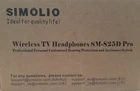 Simolio ASM-825D PRO Wireless TV Headphones with Clear Dialog Mode. Enhanced Voice Control for Seniors Hard of Hearing. Enjoy your favorite programs in healthy & clear sound. NEW in Box. Voice Enhancement No Audio Lag Automatic Signal Control Tone Optional (Treble/Normal/Bass) Balance Adjustment. One Button Push Long Range Up to 100ft.