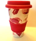 Simply Vera Wang Breast Cancer Awareness Pink Ribbon Ceramic Coffee Mug Tumbler. From Kohls Cares. Hot pink rubber lid and gripper on outside. Nice condition. 6 1/2" high.