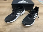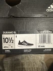 Step up your workout game with these sleek and stylish adidas Duramo SL Black White Women's Running Shoes. Designed for a variety of activities including CrossFit, walking, and running, these shoes offer optimal comfort and support. The lace-up closure ensures a secure fit while the cushioned insole and foam lining provide a plush feel with every step. The durable rubber outsole offers excellent grip on a variety of surfaces, making these shoes perfect for any active lifestyle. Fashioned from a high-quality synthetic upper with a classic solid black color, these shoes are versatile enough to pair with any activewear or casual outfit. Enjoy the breathable fabric and the iconic adidas logo accent for a touch of sporty elegance.