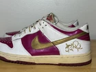 This Nike Dunk Low GS youth shoe is a limited edition piece with a Rave Pink Gold shade that is perfect for any occasion, be it party, activewear, casual, formal, or business. It comes with features that include laces, cushioning, and comfort, making it suitable for walking, school, and basketball. This shoe has a low-top shaft style and a medium shoe width that is perfect for unisex kids with a US shoe size of 6 and a UK shoe size of 5.5. The shoe is made of leather and was manufactured in 2006 in Vietnam. The FTG number is 309601-671, and the product line is Nike Dunk Low. This shoe is not just a rare vintage item; it is also a stylish and comfortable footwear perfect for any occasion.