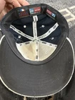 preowned. 7/10 worn condition. slight dirt/aging on hat/ inside hat/under brim. hat creasing. rare finds. see pics for more.