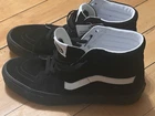 Elevate your shoe game with these stylish VANS Sk8-Hi sneakers in black. Perfect for any occasion, these high-top shoes feature a solid pattern and are accented with lace and logo details. The cushioned insole and comfortable fit make them ideal for walking, school, and other activities. These sneakers are versatile and can be worn for activewear, casual wear, or workwear. The VANS Sk8-Hi model is a classic design that has been released in 2022, making it a must-have for any sneaker enthusiast. Get your hands on these sneakers today and step out in style!