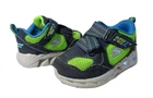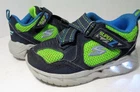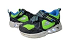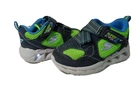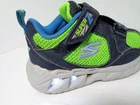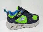 Get your little one ready for any adventure with these Skechers Super Z sneakers. Featuring a hook and loop closure and adjustable strap, these shoes are easy to put on and take off, and provide a secure fit for little feet. The light-up design adds a fun touch to these colorful, athletic shoes, which are perfect for casual wear or sports activities like walking or CrossFit. Made with a synthetic and textile upper material and a fabric lining and insole, these shoes are comfortable and breathable, with moderate cushioning and slip-resistant outsole material. The shoes are lined with a solid pattern and feature the Skechers logo as an accent. They come in US shoe size 7, UK shoe size 6, and EU shoe size 23, making them a great choice for boys who love to stay active.