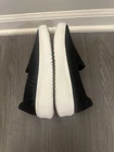 The Skechers Air Cooled Women's Black Slip-On Shoes in size 7 are a comfortable and stylish option for casual wear. Featuring a solid black color with a slip-on closure, these shoes have a flat heel and are made with synthetic lining and upper material. The memory foam insole provides added comfort, while the rubber outsole ensures durability. With the Skechers brand known for quality and support, these sneakers are a great choice for everyday wear. Preowned Good Condition