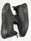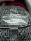 Skechers Arch Fit Slip-On work shoes for women in black, size 11 (UK 8, EU 41). Features include slip-resistant outsoles, W width, synthetic upper material, and Arch Fit technology for comfort. The model number is 108063W.