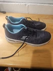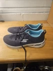 The Skechers Go Walk Arch Fit Shoes are designed for women in size 9.5 Wide (US) with a comfortable memory foam insole. These blue sneakers feature a lace-up closure, lightweight design, arch support, and cushioned comfort for activities like walking, cross-training, and running. The synthetic upper material, fabric lining, and rubber outsole provide durability and breathability, making them suitable for casual or activewear use during the summer, fall, and spring seasons. These sneakers are part of the Skechers Memory Foam product line, offering both style and functionality for sports enthusiasts.