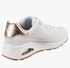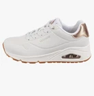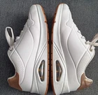 Choose gold and spice up your style with Skechers Street Uno Golden Air now. This fashionable lace-up shoe features a smooth Durabuck upper with gold accents, a padded Skechers AirCooled Memory Foam; comfort sole and a visible, air-cushioned SkechAir midsole. This very comfortable Shoes are in good and very clean condition.