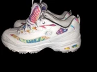 Elevate your athletic style with these Skechers Women's D'Lites Leather Lace Up Shoes in Dreamy Sky White. These fashion sneakers feature a low top shoe shaft style and lace-up closure for a secure fit. The upper material is made of premium quality leather and the insole is made of foam, providing comfort and support for walking, cross training, CrossFit, running, and jogging. These shoes have a stylish look with accents of the Skechers logo and a white and multi-color scheme. They are perfect for any season, whether it's winter, summer, fall, or spring. The shoes come in a US size 9.5 and UK size 6.5, with an EU size of 39.5. Get ready to step up your fitness game with these Skechers Memory Foam shoes.